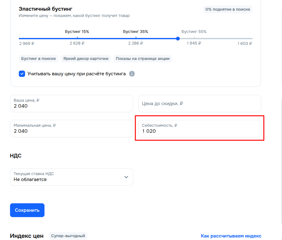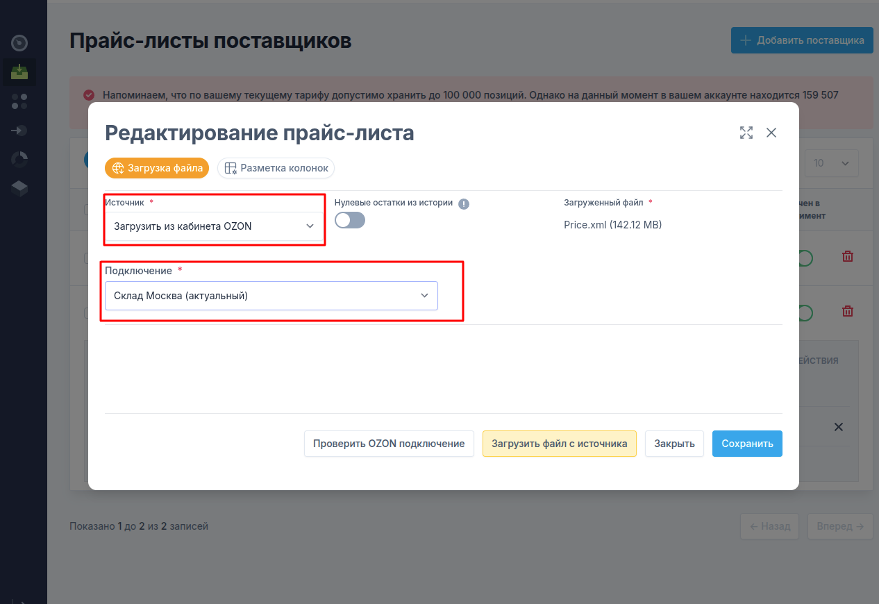 Добавлена возможность выгрузки себестоимости на маркетплейс OZON из цены поставщика полученной из прайс-листов.