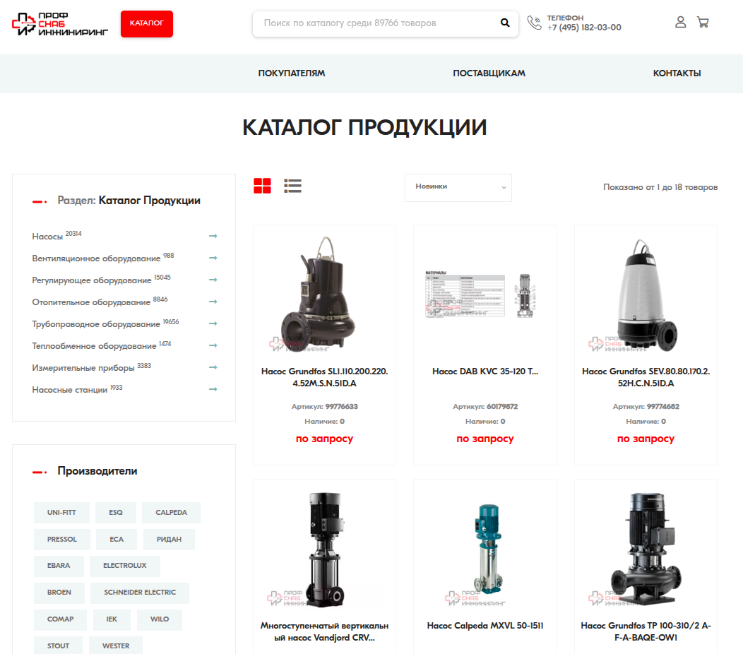 Заказчик — растущий дистрибьютор промышленного оборудования с обширной базой российских поставщиков, обратился к нам с комплексным запросом. В связи с планами по увеличению числа поставщиков, необходимо было не только разработать новый сайт, но и организовать в нём автоматическое получение и оперативное обновление товарных данных.